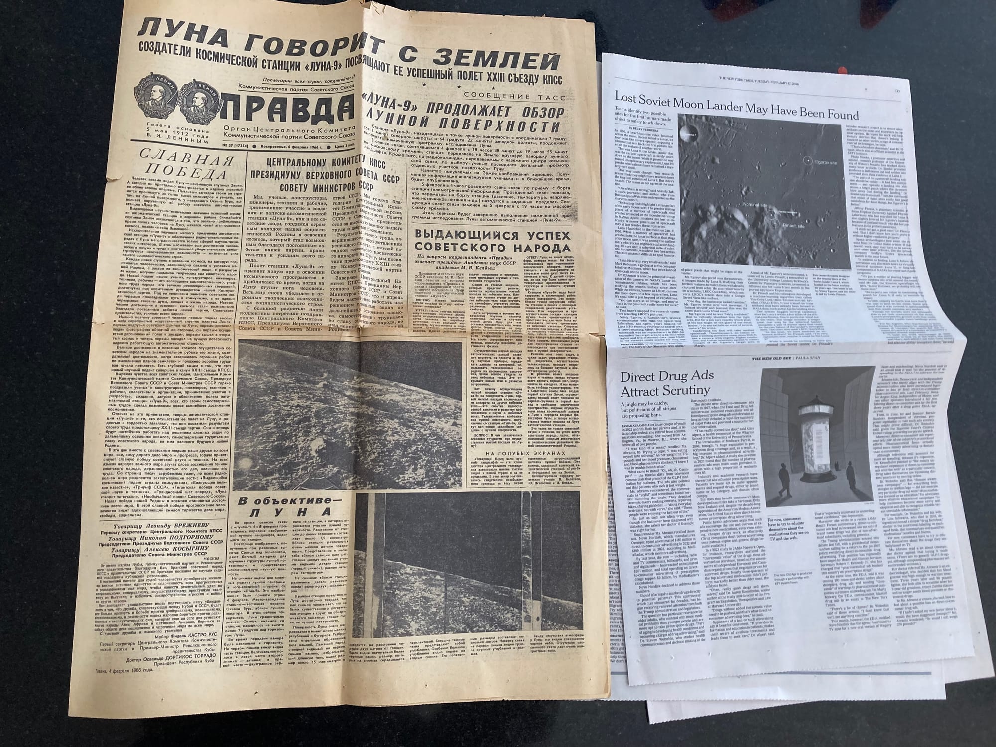 This article is particularly special to me because I have a real soft spot for this soft-landing. I even own a copy of the original 1966 issue of Pravda that announced the milestone achievement of Luna 9 (side note: The Soviets were actually scooped on their own landing, as scientists at Jodrell Bank Observatory intercepted Luna 9’s images and published them first).